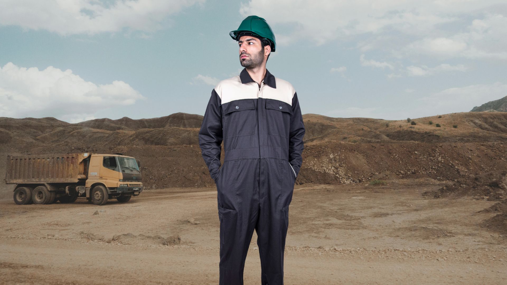الگوی ارگونومیک دوتکه با تقویت سرشانه، آرنج و فاق؛ مناسب راه‌رفتن، نشستن و خم‌شدن مداوم در محیط کارگاه، با امکان درآوردن کاپشن در فضای سرپوشیده.